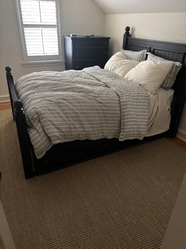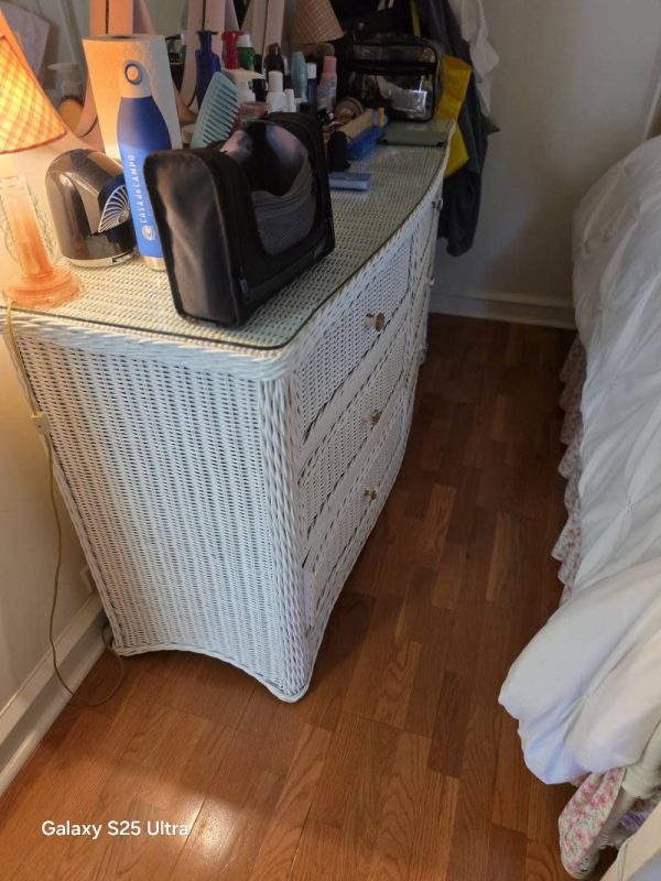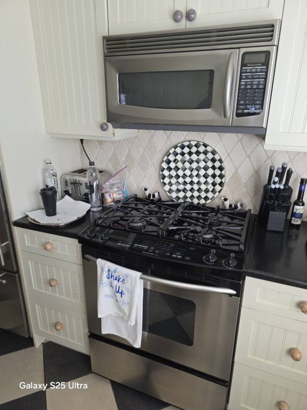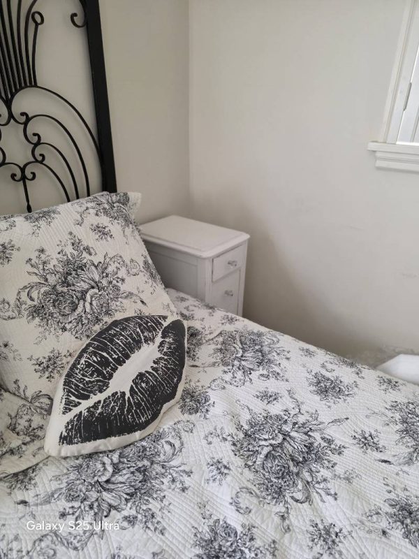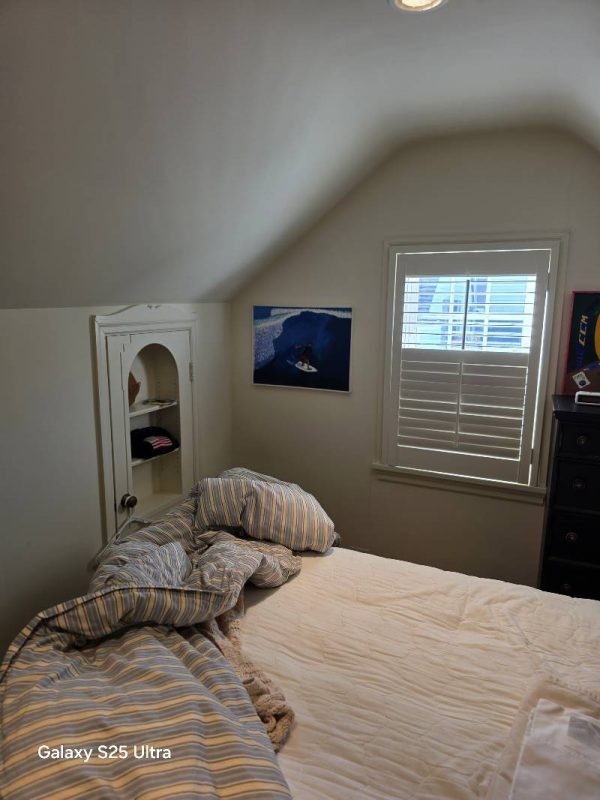 Beautiful architectural features of this 1930s renovated home with stained glass door, (2) MacKenzie-Child’s hanging lights, solid core interior and exterior doors, blue stone, 42 MacKenzie-Child’s cabinet knobs, MacKenzie-Child’s area rug, 4 MacKenzie-Child’s wall sconces with shades, MacKenzie-Child’s ceiling light, 2 MacKenzie-Child’s kitchen hanging light, Pottery Barn full size trundle bed, Ralph Lauren pillows, Liz Galbraith lamps, iron full size bed with M&S, 2 metal ceiling lamps, William Sonoma zebra rug and king size bed, Pottery Barn wall unit with baskets, Belgium block, attractive wrought iron railing, mirrors, plants, shrubs, exterior and interior lighting, windows, wooden shutters throughout, garage door opener, glass shower door, outside shower, toilets, pedestal sinks, wicker bedroom furniture, chest of drawers\, vanity with mirror, double and queen beds, gold oak hardwood floors throughout, restoration hardware trunks/stands, designer area rugs with zebra print, trundle bed with mattress with matching dress and night stand, GE Smart Water natural gas hot water heater 50K BTU, king size custom ed with M&S, hand railing, laundry room utility sink, Whirlpool front loading washer and dryer, Ducane gas furnace, nice sub zero refrigerator, Kitchen Aid Superba gas stove and Kitchen Aid microwave, kitchen cabinets with island, built in corner cupboard, area rugs, large entertainment center (Pier One) and much more.