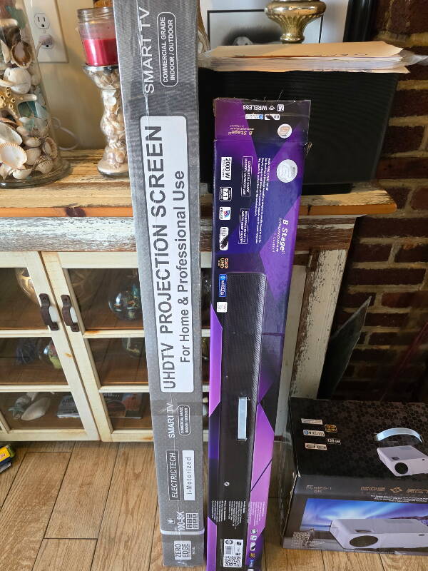 Offering Generac Guardian Model 22KW/999 +200A WiFi enabled (mobile link remote monitoring) Rhino coat with multilingual LED display with 5 yr warranty (1 year old), new in box state of the art audio visual equipment for home or commercial use (100″ 8K motorized smart UHD projection screen, voice control, 2000 watt edge 25 subwoofer multiroom aluminum, 600 watt surround sound, B stage 25 3-channel sound bar, EOS Retina 8K laser 128kg smart projector), motorized scooter with charger, 6′ white board with case, blinds, NIB blinds, lighting, vanities, toilets, furniture, appliances, doors, windows, flooring, kitchen cabinets, hot water heater, elevator, fireplace inserts, sliders and much more.