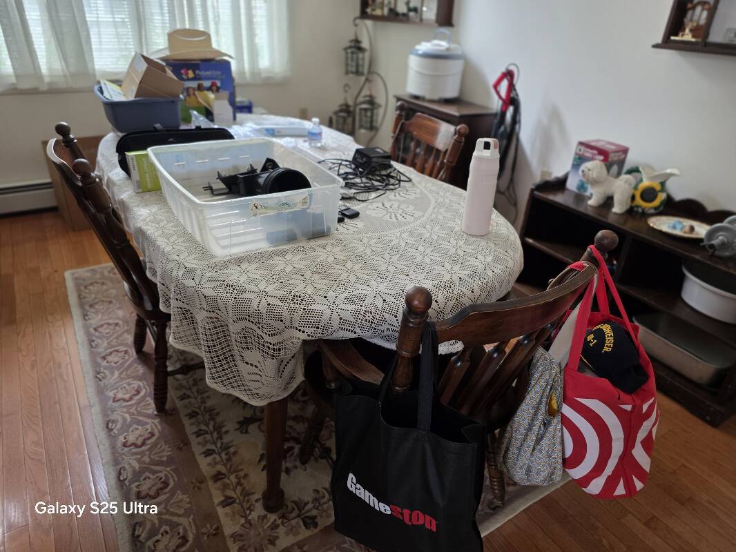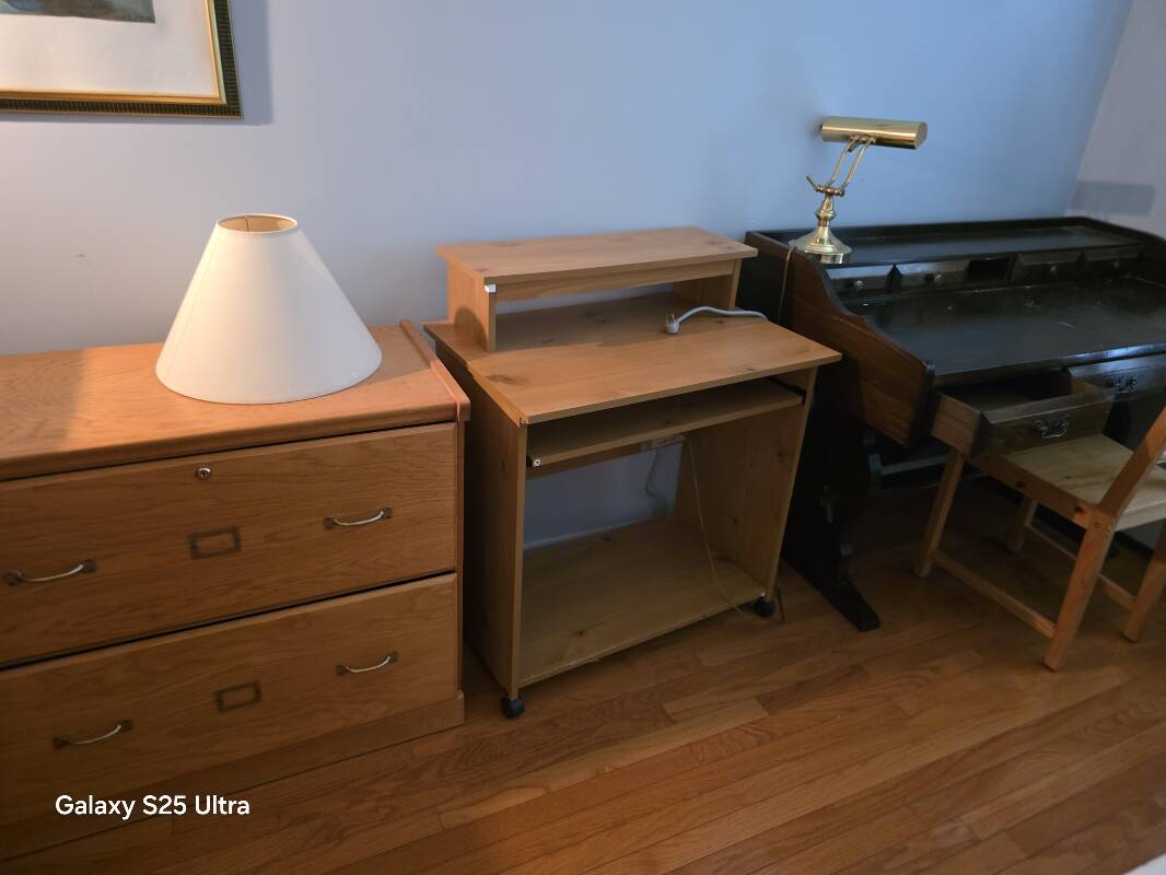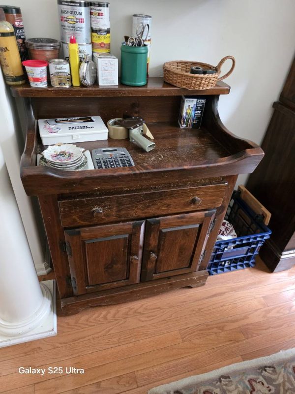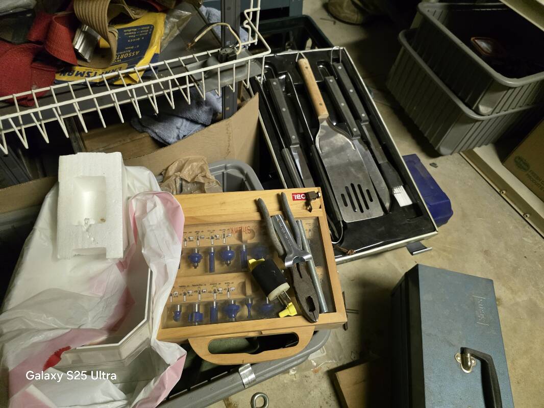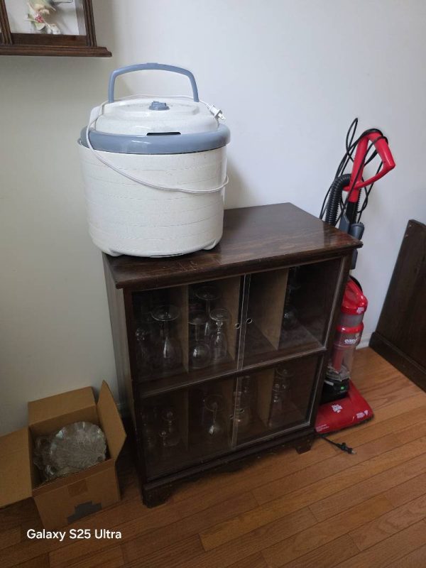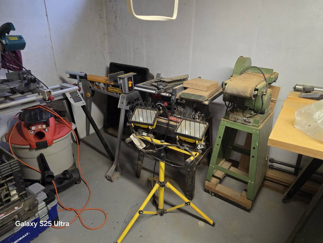 New Schwinn beach cruiser, Maytag washer and dryer, like new upright freezer, floor turbo fan on stand, fishing rods and reels, linens, umbrella stand, area rugs, usual housewares and cookware, small appliances, GE stainless microwave, undercounter AM/FM CD player stainless kitchen utensil hanging rack, TVs, wooden yellow graphics Coca Cola case, nice oak roll top desk, oak chest of drawers, nice queen sized mattress and springs, wooden armoire, lamps, artwork, occasional stand, Lane cedar chest, upright cabinets, dining room table with chairs, entertainment center, Kitchen Aid counter top oven, Cosori 6qt pressure cooler, Nesco 75 pr Snackmaster, Pro Food dehydrator, 1970 Lafayette AM/FM 8 track with phonograph and speakers, Hummel collection, S&P collection, red sofa and loveseat, lighted curio cabinet, bookcases with adj shelves, pine drysink, oak pedestal table with pressed back chairs, leather reclining and lift chair, upholstered reclining wingback chair, occasional stand, bedroom furniture, gas stove and refrigerator, upholstered side chairs, Capodimonte ornate pitcher, teacup collection, coffee grinder, scales, sadd iron, vinyl 33 1/3 records, Little Giant adjustable ladder, 6” Reliant joiner, pipe clamps, Coleman lantern,  ladder, Systimax SCS cable, large Craftsman 3-tier stacking mechanic’s box, large floor model belt and disc sander, wet/dry shop vac, Rockwell floor vice, Skil chop saw with sliding stand, shop lights, Craftsman 2.5hp radial arm saw, Dirt Devil sweeper and much more.