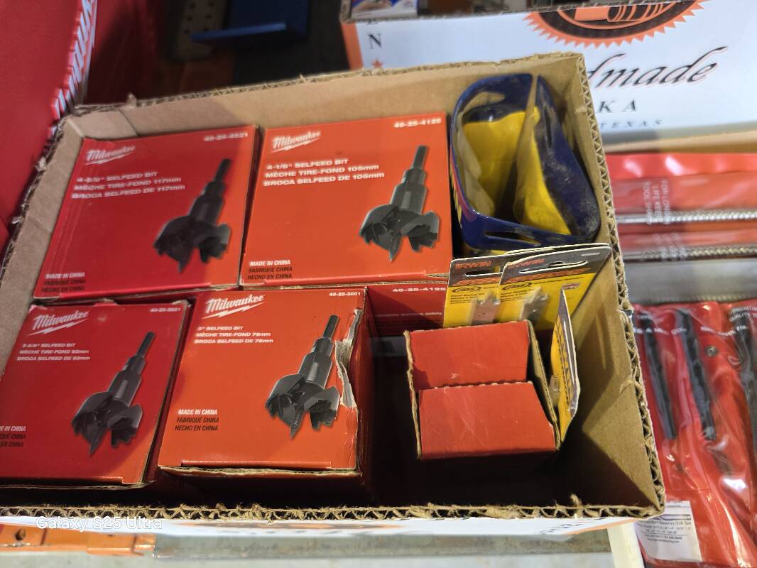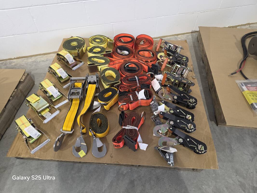 Ratchet Straps, Cut Off Saw, Buffers, Sanders, Power Washers, Various Types of Heaters, Commercial Garage Door Opener 1/2 HP, 115V, Hitches (Inserts, Extension Balls and Tubes, Shanks, Various Screws, Compartmented Boxes with Latches and Lids, Cases,