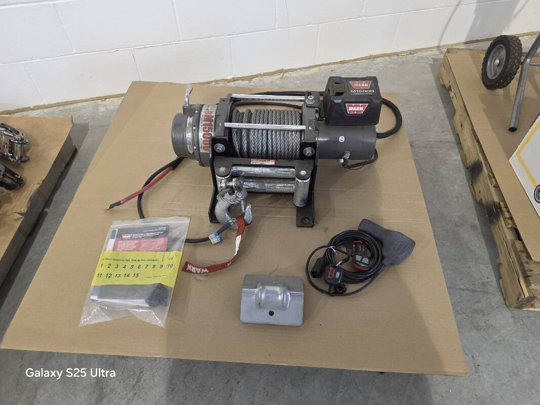 15,000# Wench/90′ wire rope, remote control 12 Volt